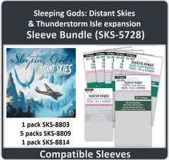 This is all the sleeves for the game Sleeping Gods: Distant Skies & Thunderstorm Isle expansion (8803 X1 + 8809 X5 + 8814 X1)
