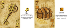 The core of your turn in Dead Man's Draw is all in the flip of the cards; pulling the top card from the deck and using its special ability. Keep drawing cards and risk losing it all, or play it safe and bank your treasure. When you draw two cards of the same suit, your booty goes down to Davy's Locker! Remember – no pirate gets rich by playing it safe!