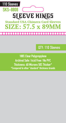 Our standard card sleeves exceed industry standards and they do not damage your cards. Our thinnest sleeves are 60 microns thick, making them 50% thicker than average card sleeves, which are usually 40 microns thick. Because they are free of acid and PVC, these sleeves are safe for handling and they will not tarnish your cards, making them safe to use for archiving your rarest finds. With 100% clear polypropylene, your cards are easily viewable.