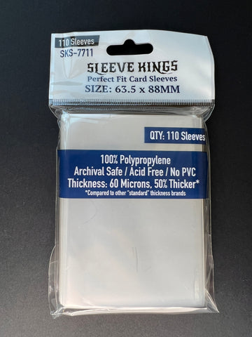 The typical card sleeve thickness is 40 microns. At Sleeve Kings, our card sleeves are 60 microns thick, making them 50% thicker than the industry standard. Download our app or access our Google sheet today to quickly find the SKU you need.